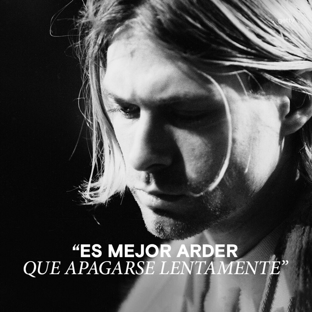 En su casa, encima del garaje, dejó una nota de suicidio en la que cita un fragmento de una canción del célebre cantautor Neil Young: “es mejor arder que apagarse lentamente”. https://latam.historyplay.tv/hoy-en-la-historia/05/04