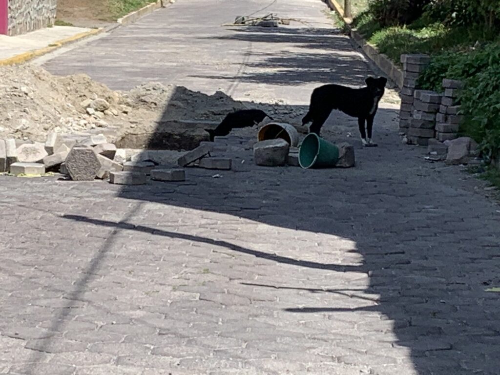 Como resultado al daño que le provocaron el tubo del drenaje empezó a salir las aguas “negras” y que decidieron ABANDONAR la obra dejando en el lugar cubetas y adoquines regados en toda la calle sin importarles que alguien pueda tropezar en la noche.