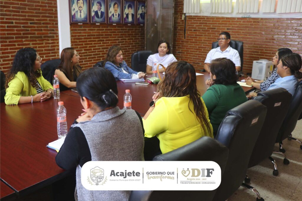 La presidenta del Sistema Municipal DIF de Acajete, C. Crisna Lidia Flores Robles, y el presidente Municipal Cristian Flores Flores, llevaron a cabo una importante mesa de trabajo con la Supervisora Escolar de la Zona 103, Profra. María Antonieta Reyes Castelán, y las directoras de los Jardines de Niños que forman parte de dicha zona.
