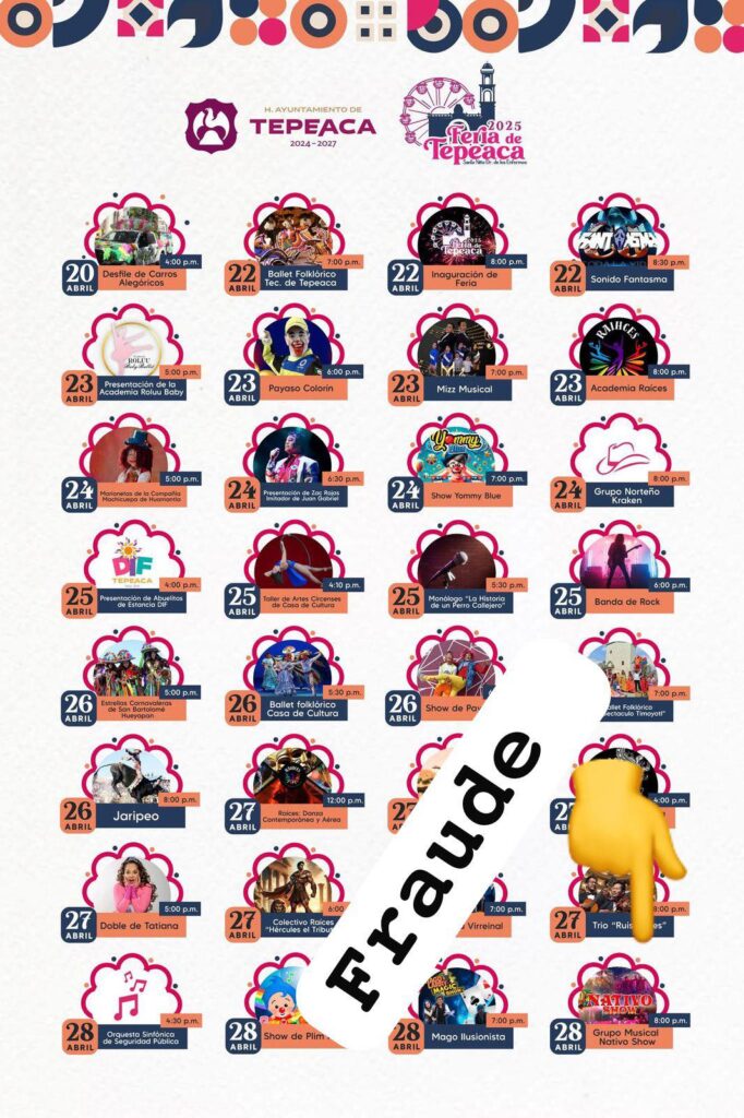 Además, el grupo acompañó su publicación con el cartel de la feria tachado con la palabra “Fraude”, lo que desató críticas en redes sociales y entre los habitantes del municipio.