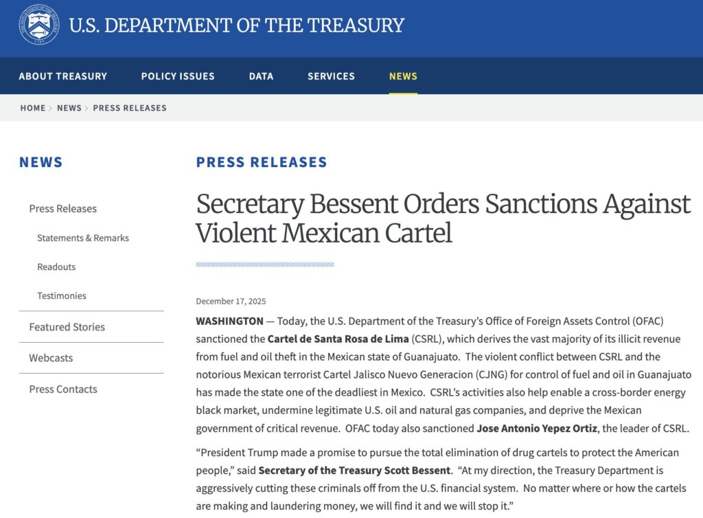 Finalmente, el Departamento del Tesoro reiteró que, bajo la directriz del presidente Donald Trump, se mantendrá una estrategia agresiva para aislar a los cárteles del sistema financiero estadounidense, asegurando que no importa dónde ni cómo obtengan o blanqueen su dinero, serán localizados y sancionados.