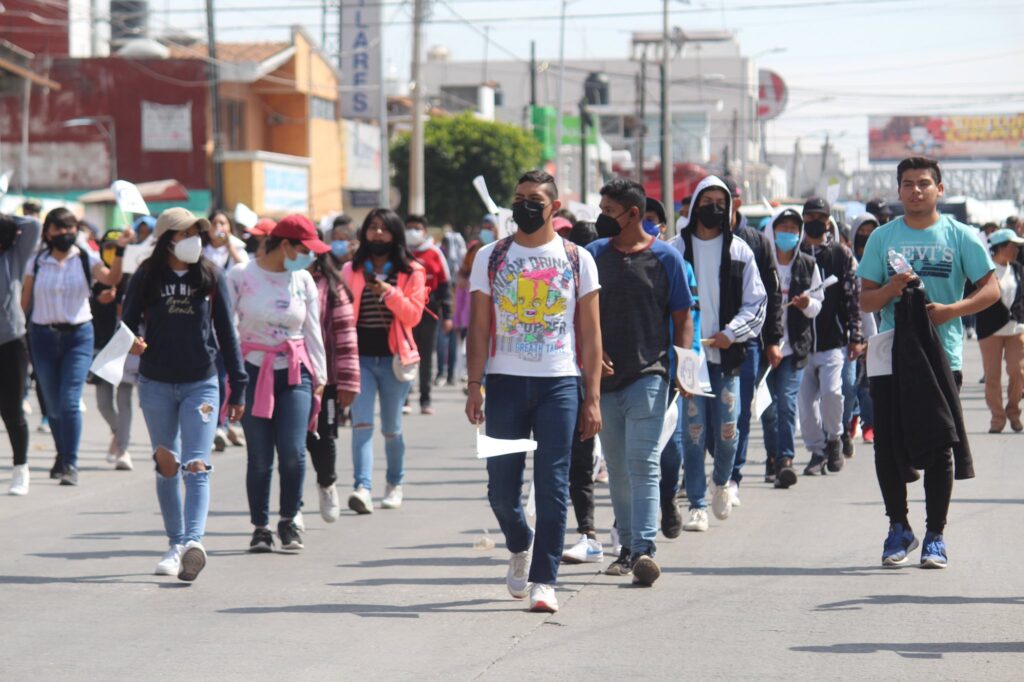 Alrededor de mil quinientos estudiantes marcharon por séptima ocasión en Amozoc, exigiéndole a Mario de la Rosa la donación del terreno para el bachillerato digital 283.