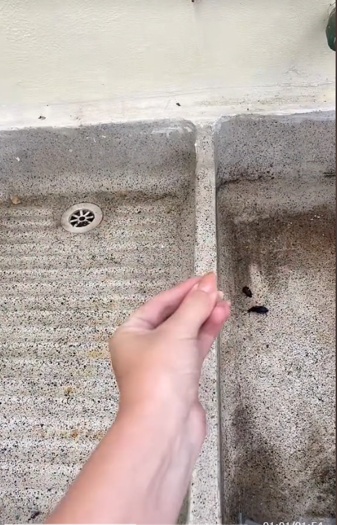 Según la mujer, el diseño de los lavaderos “no tiene sentido”, pues al tener una división en la que no cuenta con una salida del agua que se puede acumular, le causa frustración debido a lo difícil que puede ser para ella.