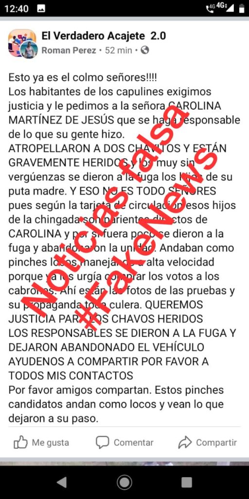 En redes sociales circula una noticia en donde supuestamente atropellaron a unos niños les informamos que es totalmente falso y no se dejen engañar no dicen exactamente el lugar del accidente, ni el nombre de las personas lesionadas y policía del estado nos reportan que no hay algún suceso de accidente vial en el municipio en estos momentos.