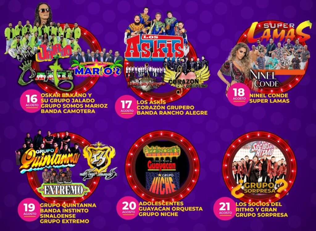 - Miércoles 17 de agosto: Los Askis y Corazón Grupero