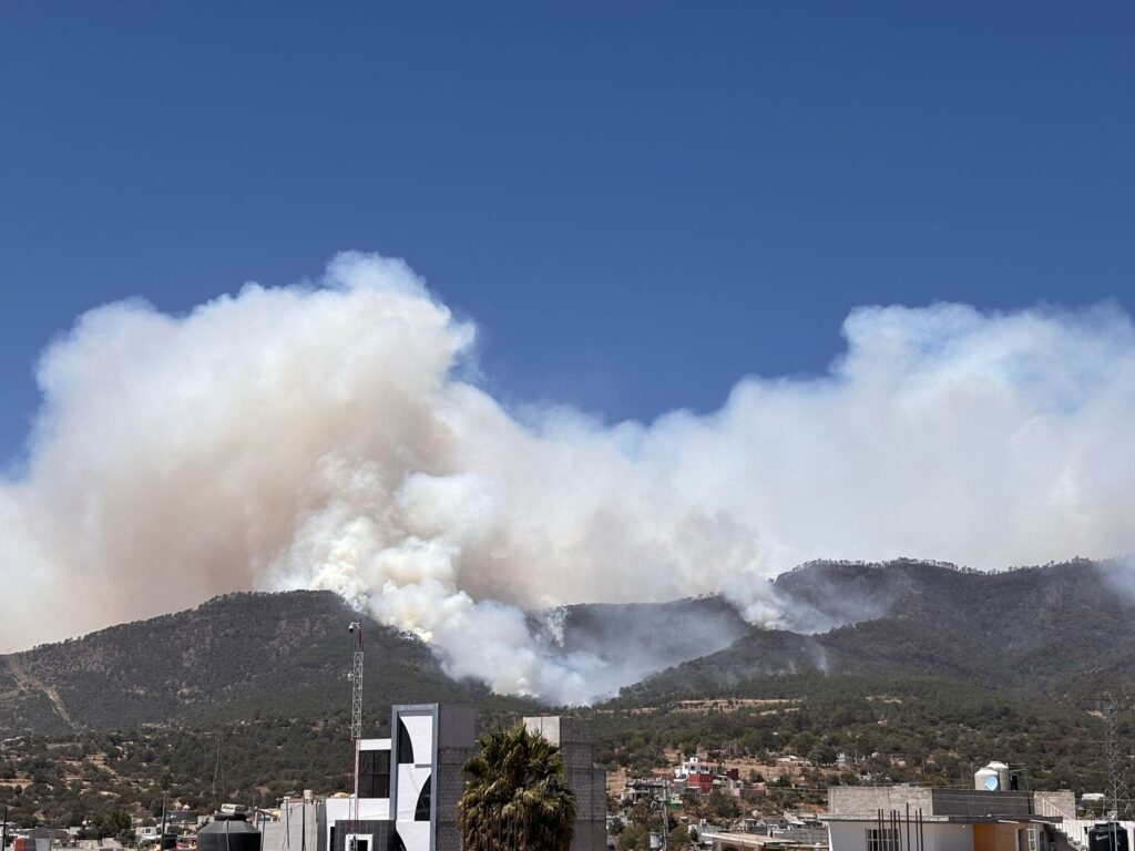 En el caso de Atltzayanca, las imágenes compartidas por testigos reflejan los severos daños ocasionados a la vegetación, así como una considerable afectación en la calidad del aire. El fuego, que se originó en la zona de Libres, ha alcanzado el emblemático “Peñón de las Águilas”, en la cima del cerro de San Gabriel, y ha interrumpido el paso vehicular en la carretera Atltzayanca–Libres, Puebla.