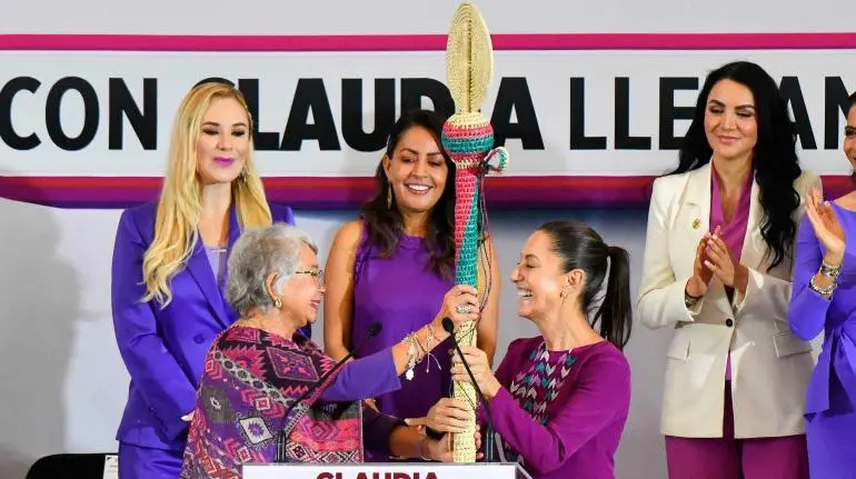 La senadora Olga Sánchez Cordero, ex secretaria de Gobierno de México, le entregó un bastón de mando a la virtual presidenta como símbolo de unidad feminista, y recordó la agenda pendiente a trabajar en la próxima administración.