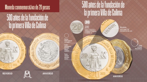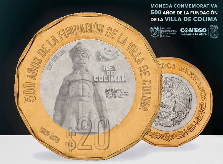La nueva moneda de 20 pesos conmemorativa de los 500 años de la fundación de la primera Villa de Colima.