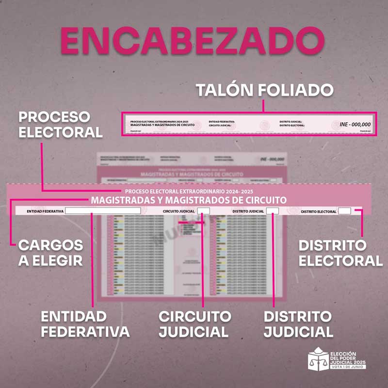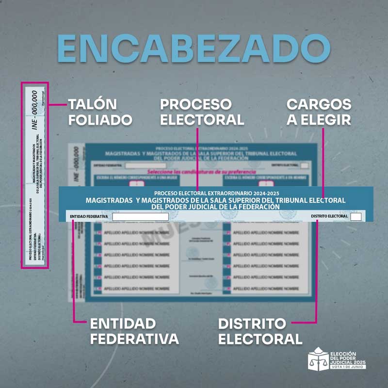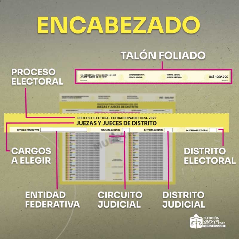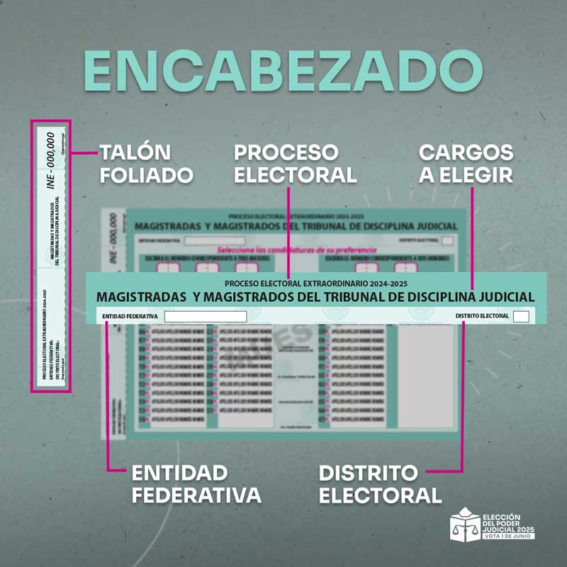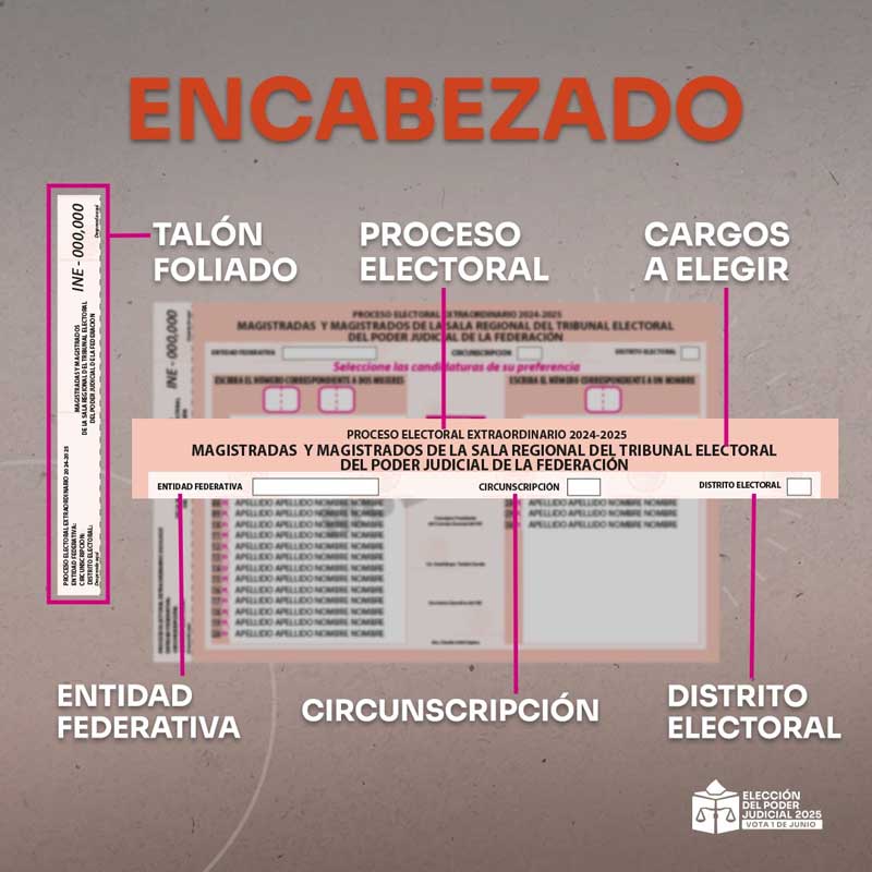 Para facilitar la participación y garantizar un voto informado, el Instituto Nacional Electoral (INE) ha desarrollado materiales informativos y ha definido un diseño claro y diferenciado para las boletas electorales, que se utilizarán exclusivamente para esta jornada judicial.
