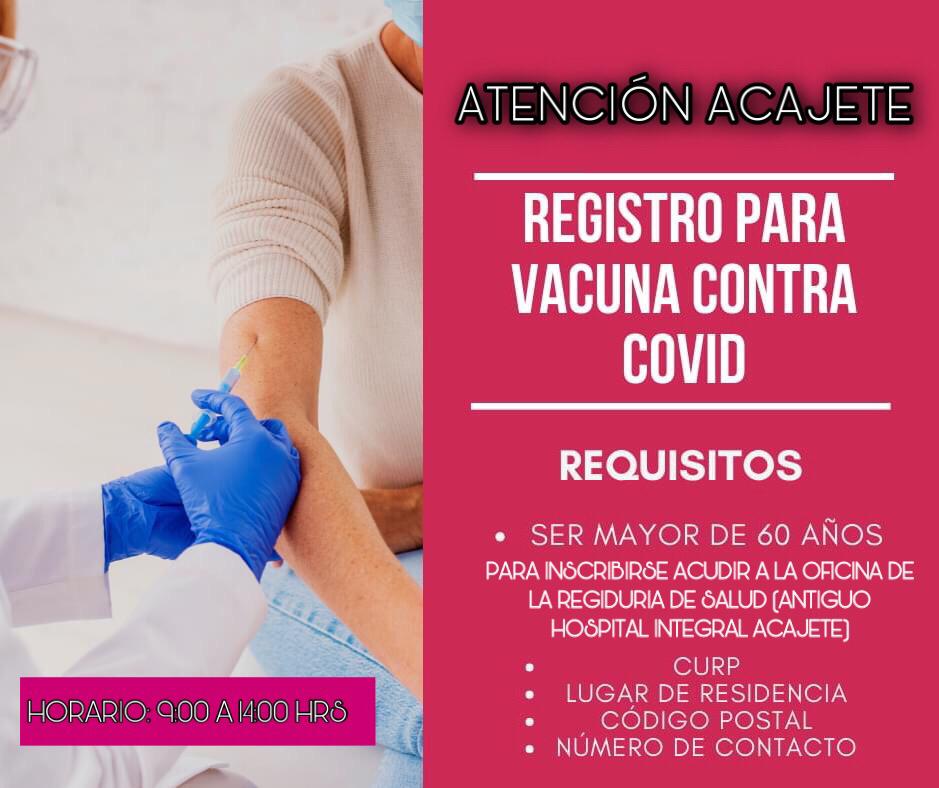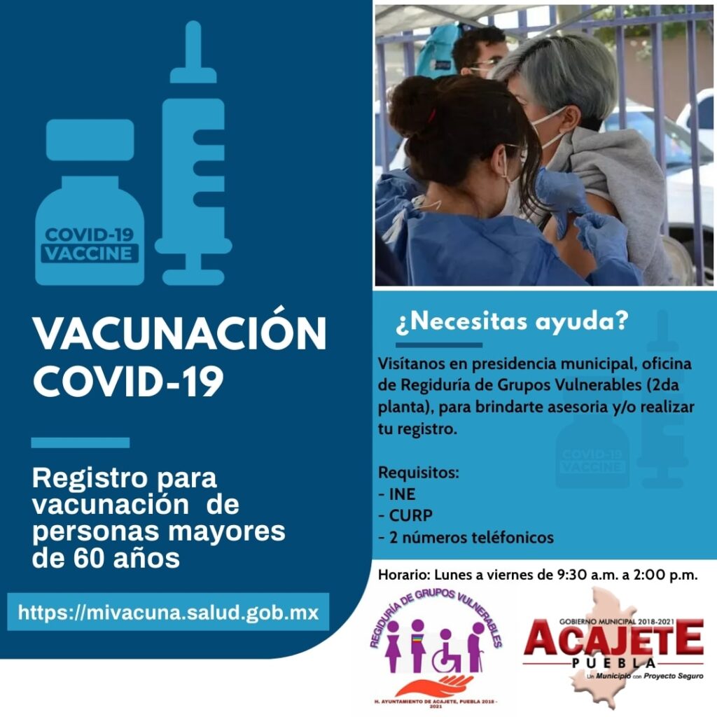 Personal de la Regiduría de Salubridad y Asistencia Publica del Municipio de Acajete inicio hoy 1 de marzo del 2021 el registro de los adultos mayores que a la fecha NO se encuentren en el sistema. Esto con el único fin de agilizar tiempos previo al plan de vacunación.