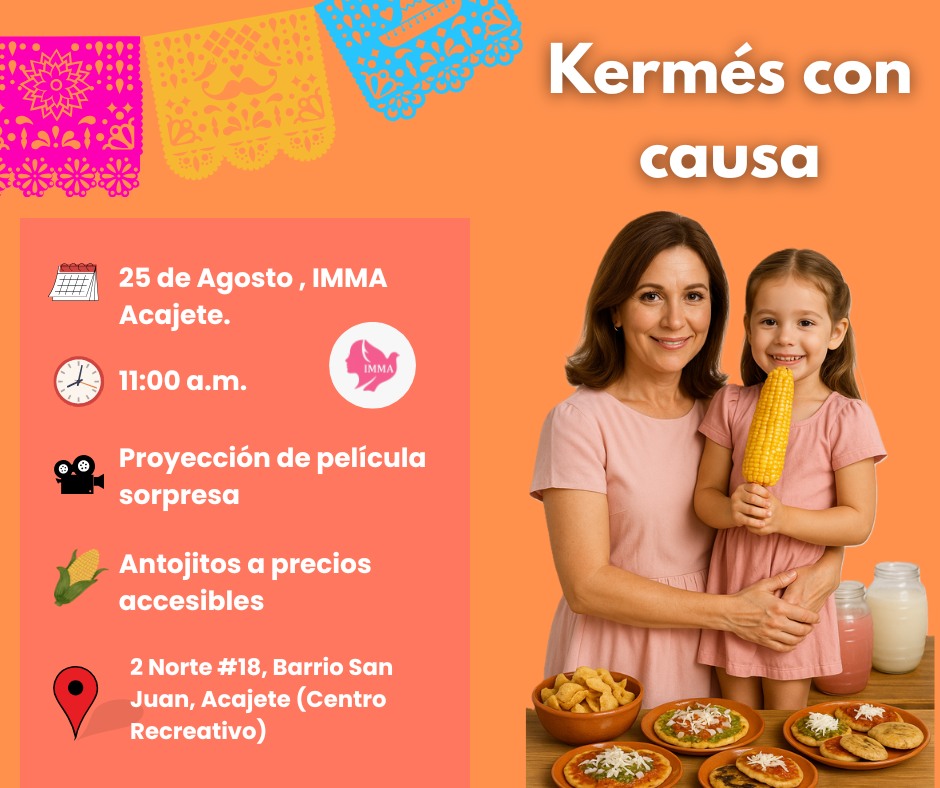 ¿Vives en Acajete y buscas un plan diferente para este fin de semana? ¡IMMA Acajete tiene justo lo que necesitas! Este 25 de agosto a las 11 a.m., en el Centro Recreativo (2 Norte #18, Barrio San Juan, Acajete), se llevará a cabo una Kermés con causa que promete entretenimiento para toda la familia.