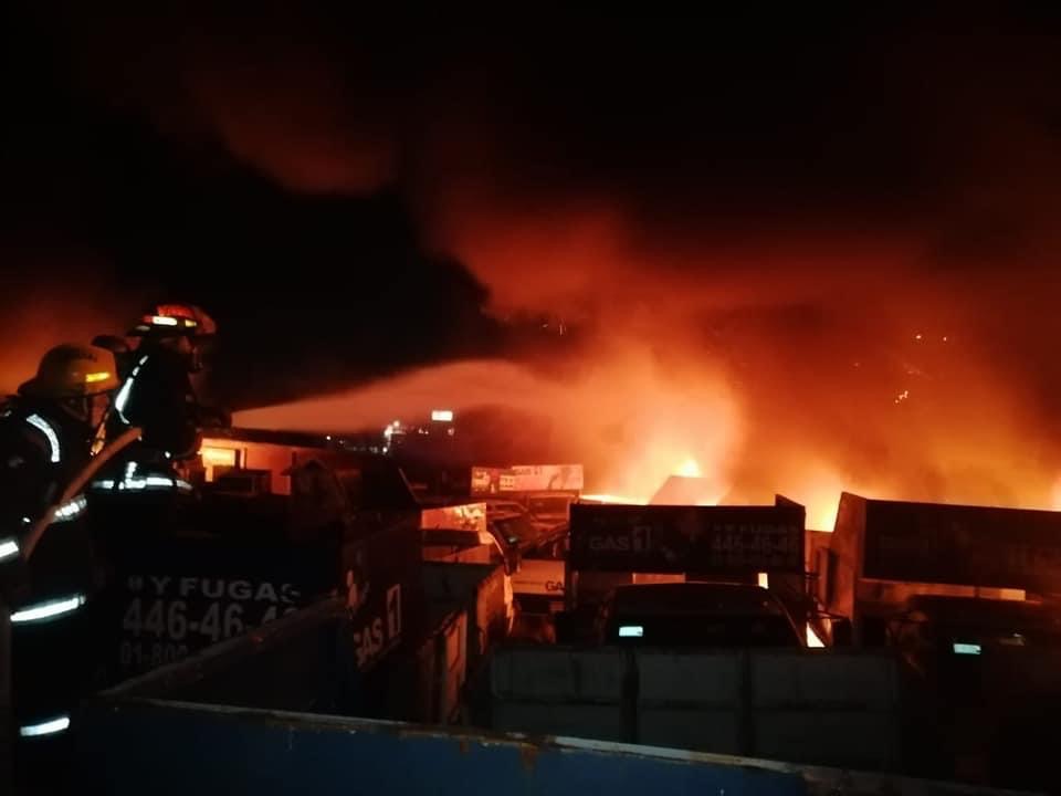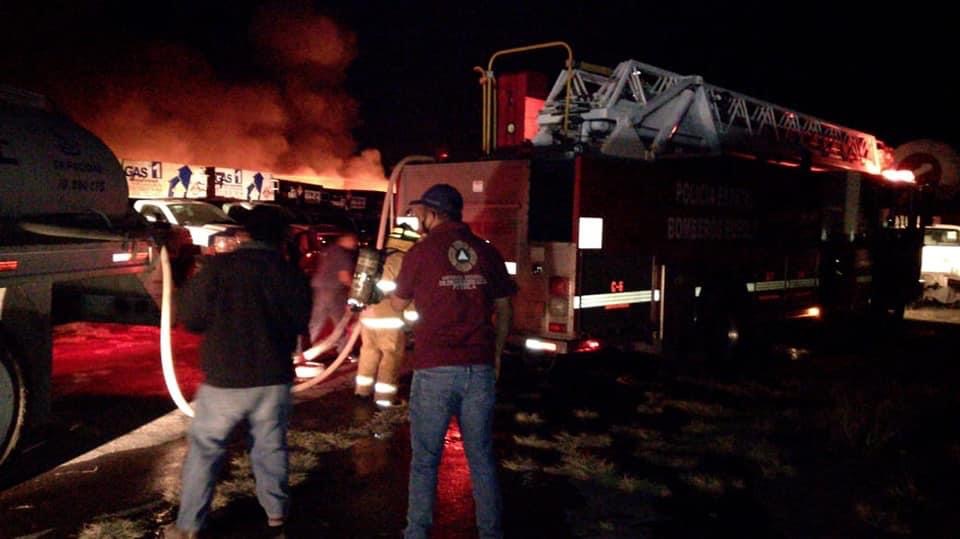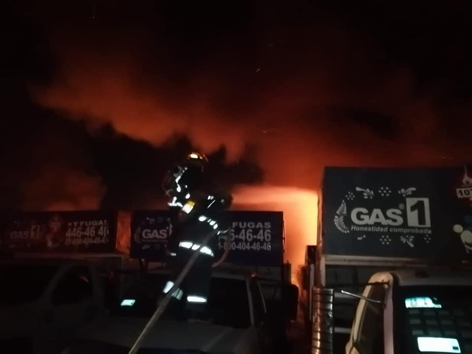 Al menos 10 unidades de la empresa Global Gas, que estaban en el deshuesadero vehicular , quedaron reducidas a cenizas, tras el incendio generado por la quema de pastizales mientras personal de Bomberos de Puebla y Tepeaca , Protección Civil Puebla y municipios aledaños realizaban acciones para apagar y controlar el fuego .
