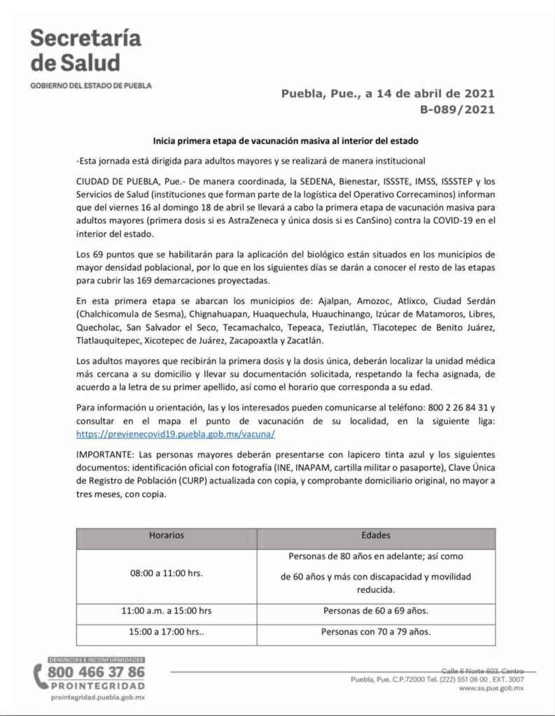 Publicado por Secretaría de Salud Puebla en Miércoles, 14 de abril de 2021