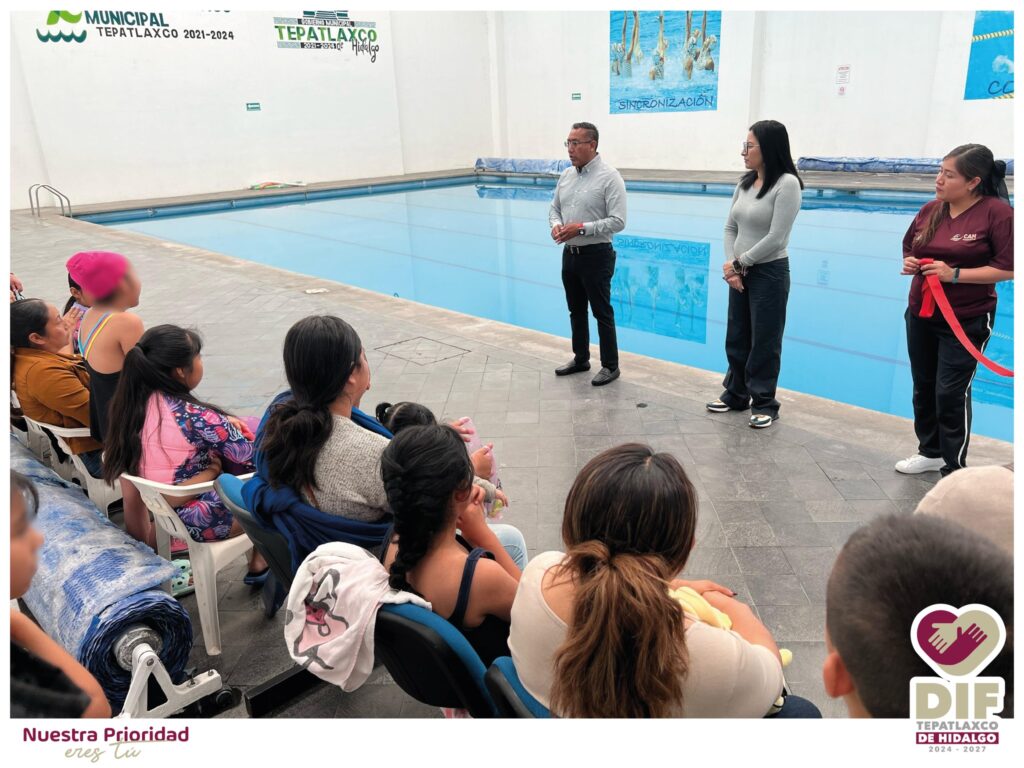 Tepatlaxco de Hidalgo, Pue. – En un ambiente de entusiasmo y compromiso con la niñez, la Presidenta del Sistema DIF Municipal, Lili Flores, y el Presidente del H. Ayuntamiento de Tepatlaxco de Hidalgo, Julio González, inauguraron oficialmente las clases de natación para las niñas y niños del Centro de Atención Múltiple (CAM de Tepatlaxco).