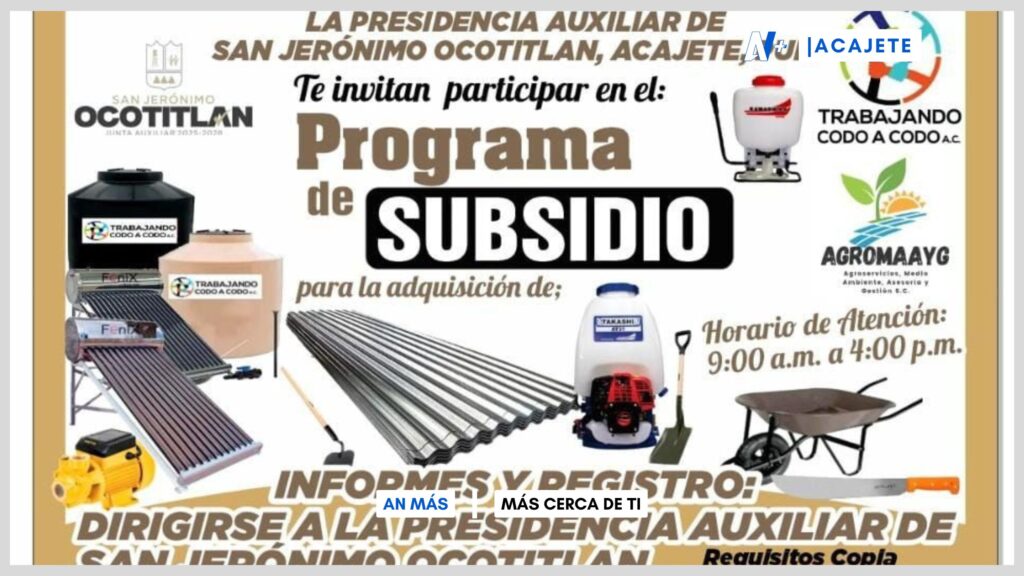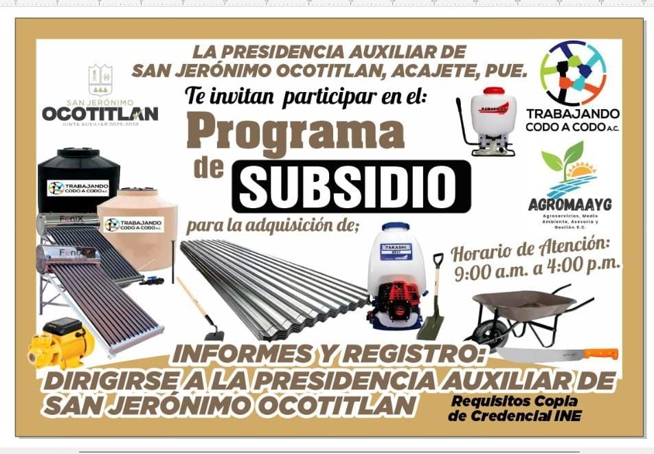San Jerónimo Ocotitlán, Acajete. – Con el objetivo de apoyar la economía de las familias y mejorar las condiciones de los hogares de la comunidad, la Junta Auxiliar de San Jerónimo Ocotitlán ha anunciado el lanzamiento de un Programa de Subsidio que ofrece productos básicos a precios accesibles.