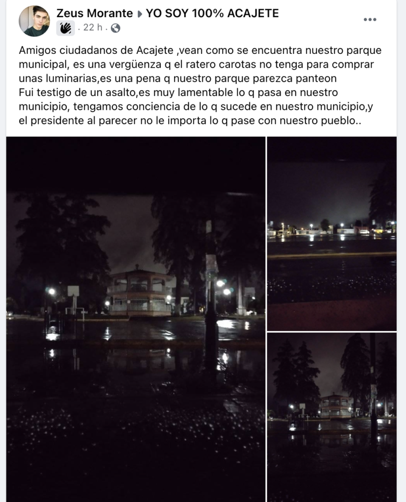 En las ultimas semanas se han reportado temas de inseguridad y de delincuencia en el mero centro de la cabecera del municipio de acajete como el siguiente caso publicado en redes sociales: