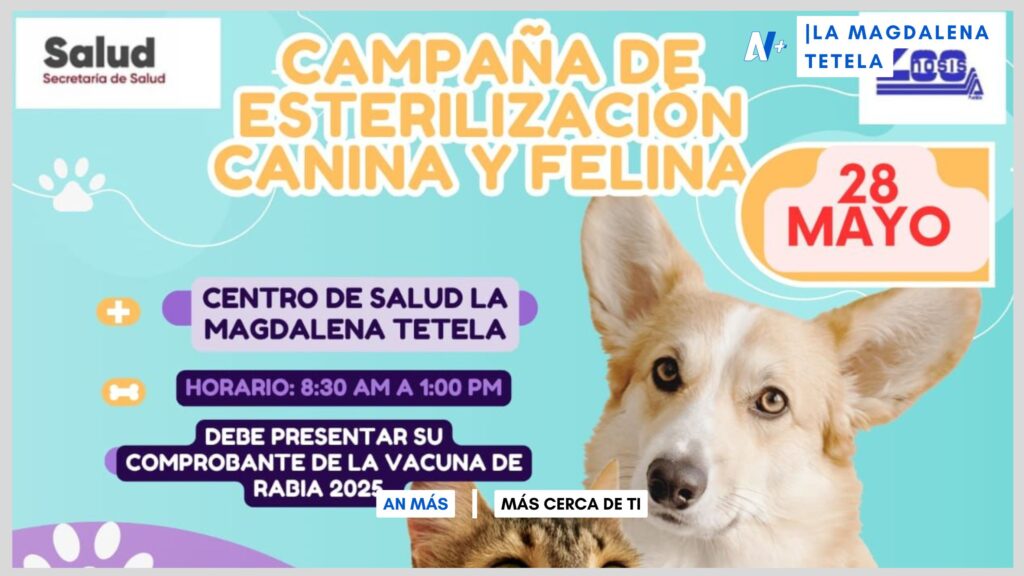 La Magdalena Tetela se suma al compromiso por el bienestar animal con una Jornada de Esterilización Gratuita para perros y gatos, organizada por la clínica auxiliar como parte de sus acciones de salud pública y tenencia responsable de mascotas.