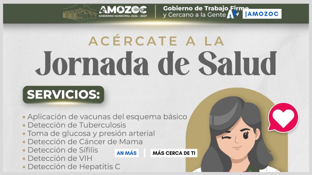 El H. Ayuntamiento de Amozoc, en coordinación con el presidente municipal Severiano de la Rosa, invita a todas las mujeres del municipio a participar en la Jornada de Salud para Mujeres, una iniciativa dedicada al bienestar integral de las amozoquenses.