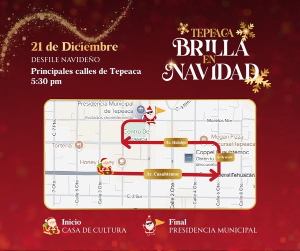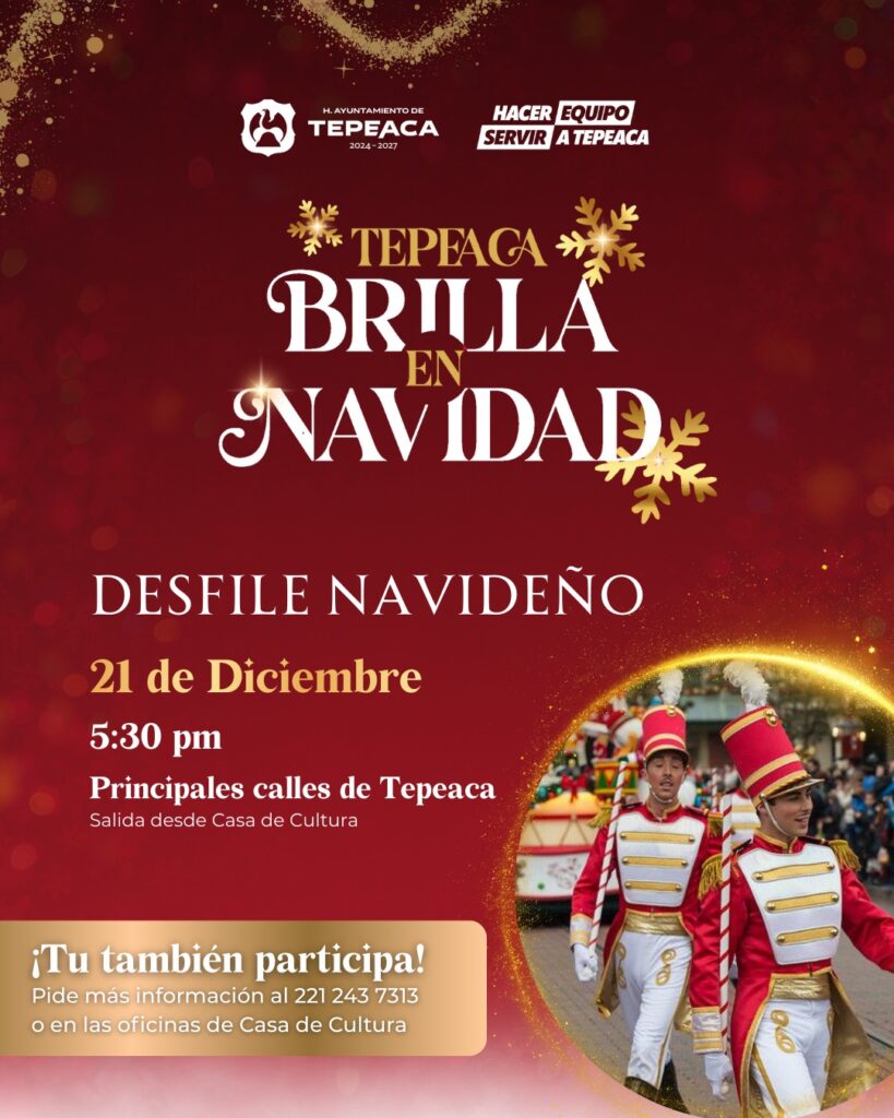 La alegría de la Navidad llegará para iluminar las calles del municipio de Tepeaca con la realización del Desfile Navideño, uno de los eventos más esperados de la temporada decembrina.