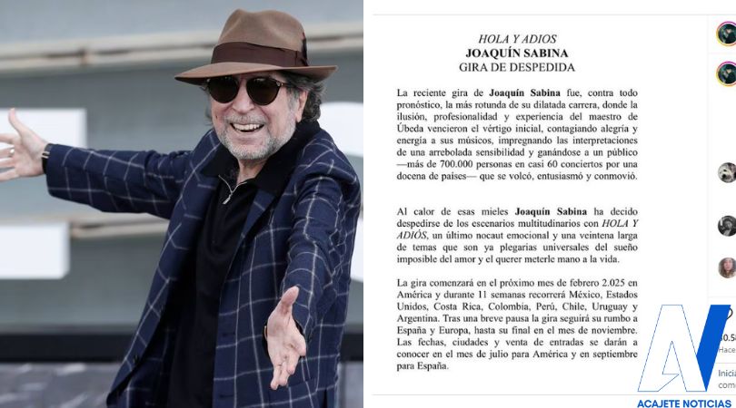 “Al calor de esas mieles y por la llana cortesía de no abandonar la fiesta sin despedirse, Joaquín Sabina ha decidido subir de nuevo a los escenarios para saludar por última vez antes de bajar el telón“, se puede leer en un comunicado emitido desde su página oficial.