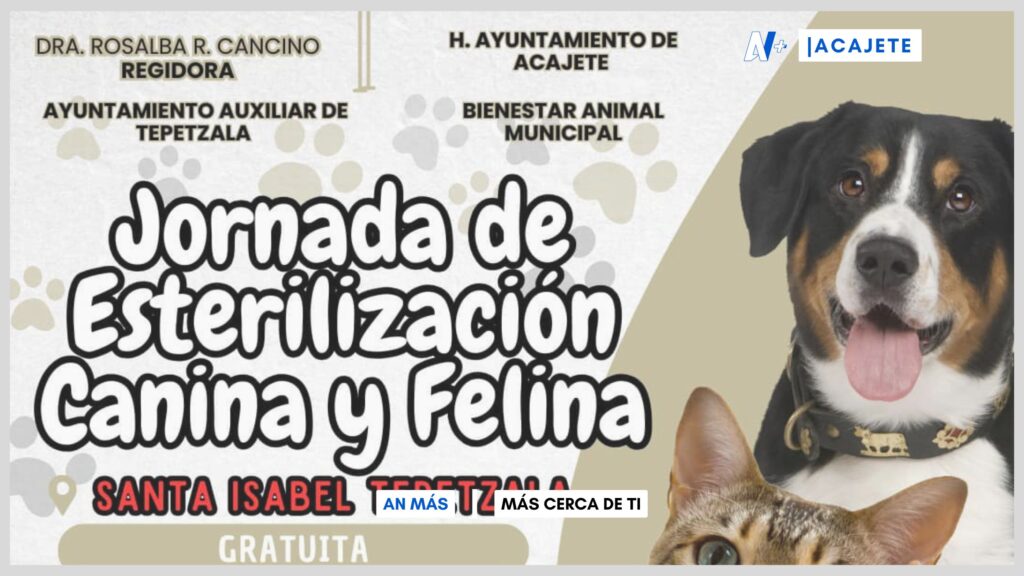 Santa Isabel Tepetzala, Acajete. – Tepetzala se prepara para una importante jornada de esterilización gratuita dirigida a perros y gatos, una iniciativa impulsada por la regidora municipal, Dra. Rosalba R. Cancino, en coordinación con el Ayuntamiento Auxiliar de la comunidad.