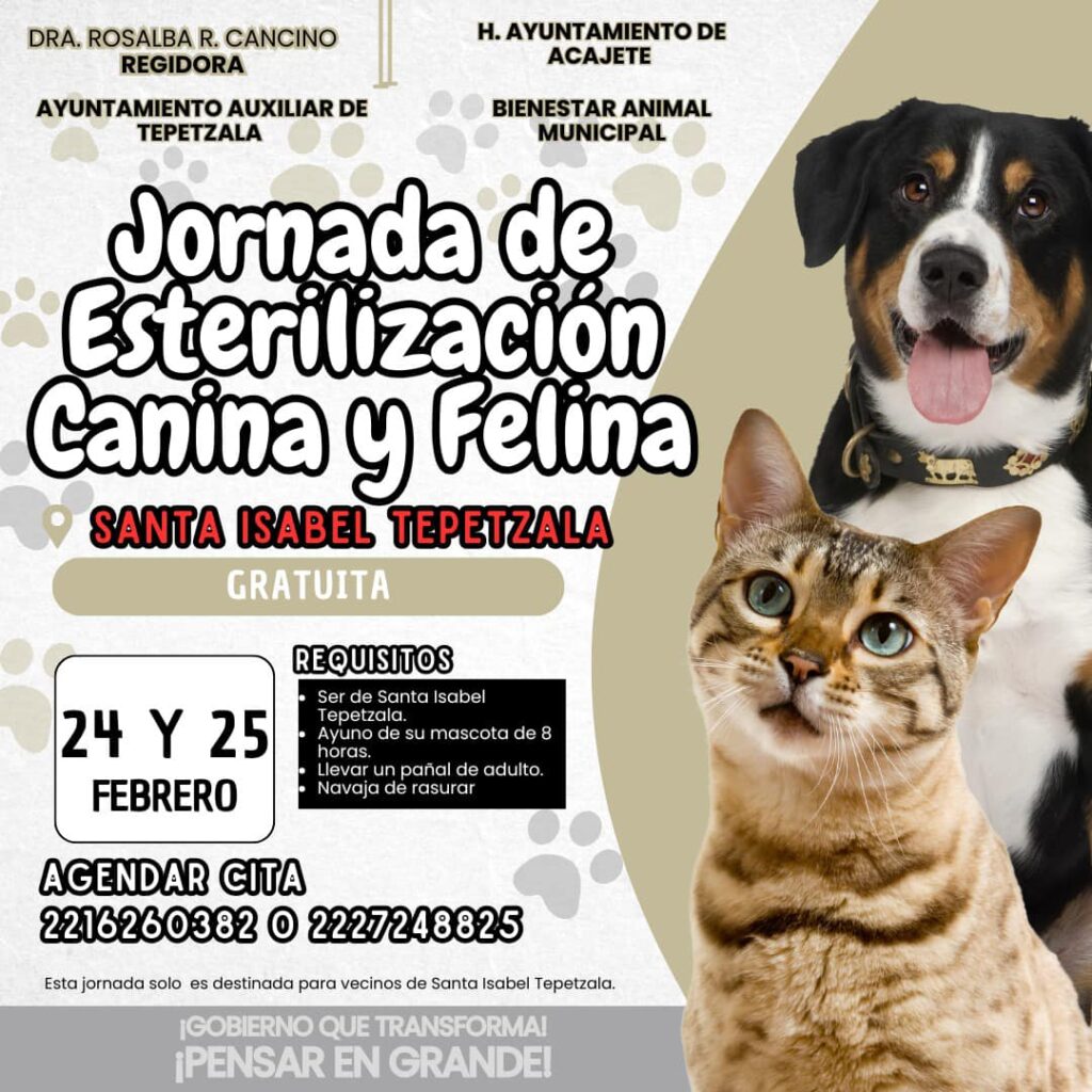 El llamado es para todos los habitantes de Santa Isabel Tepetzala ¡No dejes pasar esta ocasión para brindar una mejor vida a tu mascota!