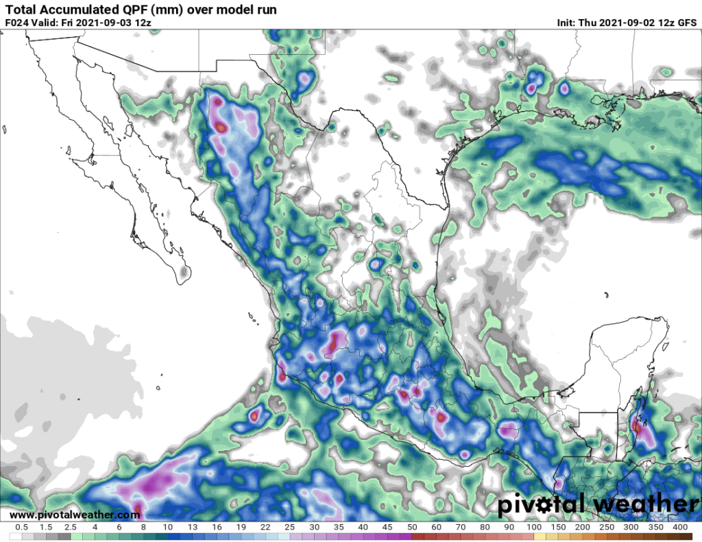 Hoy 2 de septiembre 2021, se pronostica que se desarrollen núcleos de tormenta concentrados sobre el norte, oriente, bajío, occidente, centro y sur de México debido a una extensa vaguada y onda tropical.