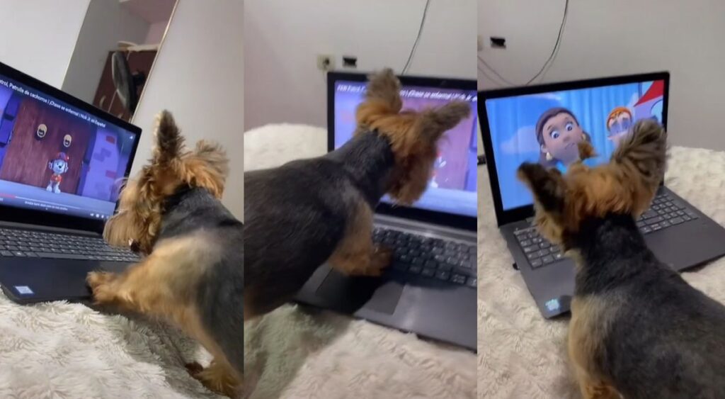 Un momento particularmente destacado es cuando la dueña pausa el video y el perro, sin dudarlo, vuelve a poner playpara continuar viendo lo que capturó su atención.