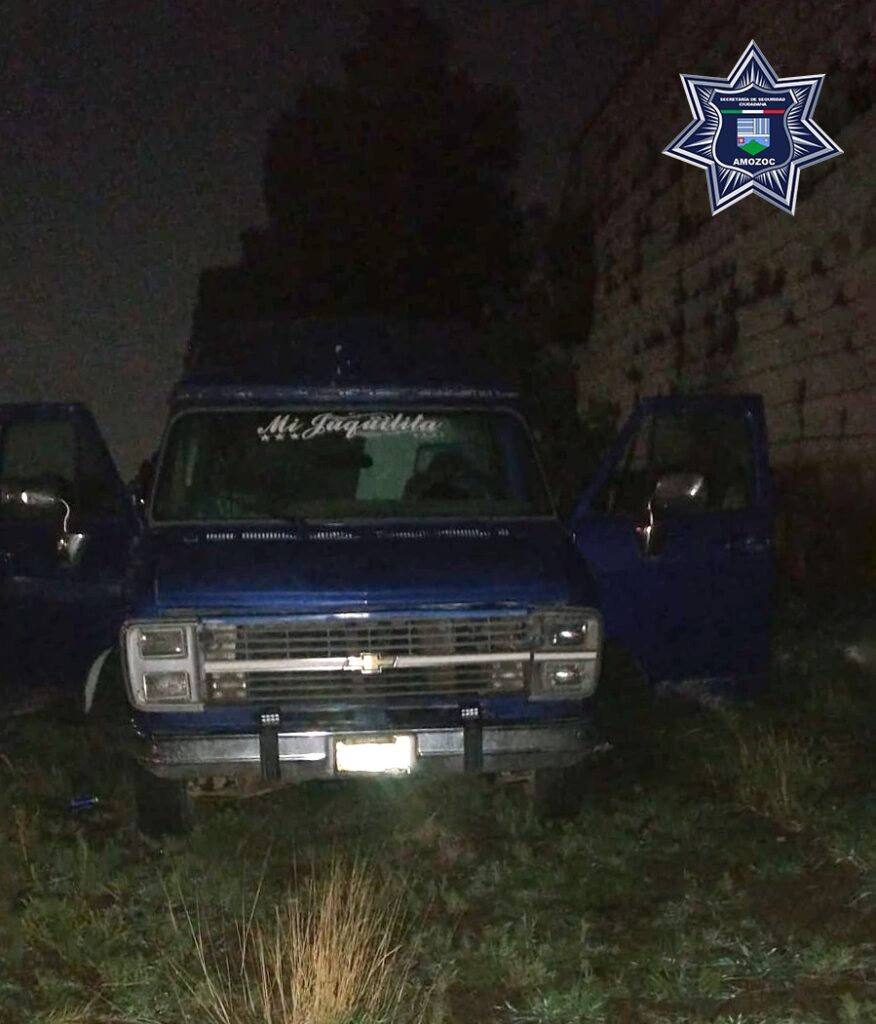 Amozoc de Mota, Pue.- Elementos de la Secretaría de Seguridad Ciudadana de Amozoc (SSC) realizaban labores de vigilancia y proximidad social en San Jacinto, cuando se percataron de una camioneta color azul, Chevrolet abandonada con placas de circulación TXK5800 del estado de Puebla.