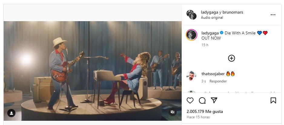 Ayer jueves Lady Gaga y Bruno Mars estrenaron su primera canción juntos, la cual lleva por nombre “Die With A Smile” y ya está rompiendo el internet.