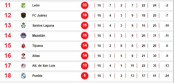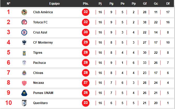 De momento, además de las Águilas y los Diablos Rojos, Cruz Azul (tercero), Monterrey (cuarto), Tigres (quinto) y Pachuca (sexto) tienen el boleto a la siguiente fase, mientras que los últimos dos puestos se estarían disputando entre cinco equipos.