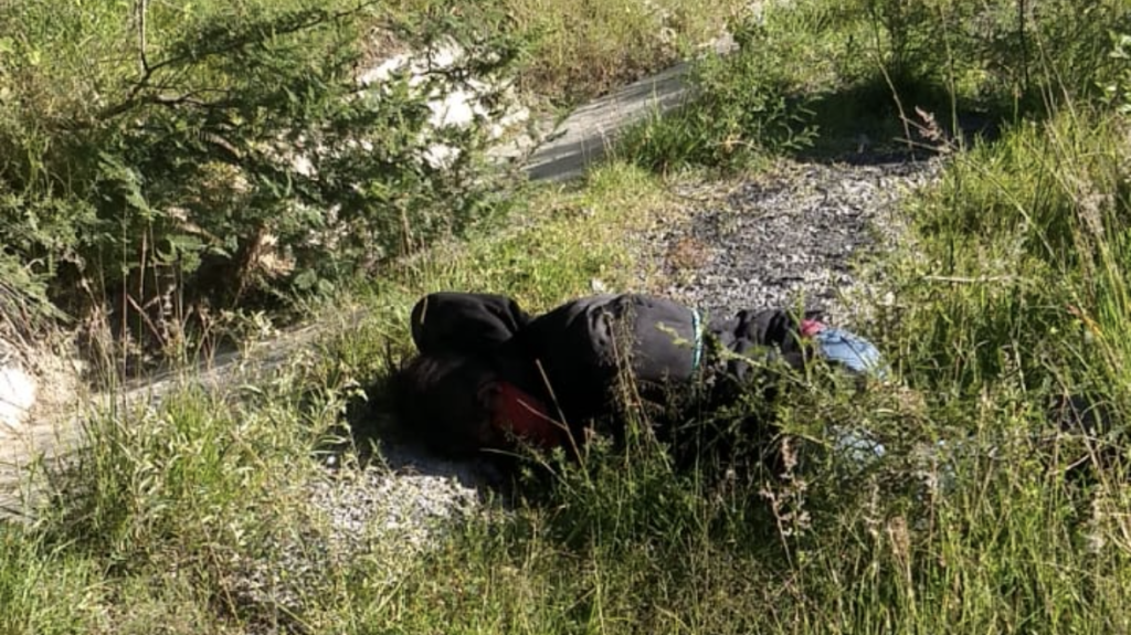 Estaba maniatado con un lazo de color verde, tambien presentaba heridas producidas por proyectiles de arma de fuego, durante la inspeccion ocular de la zona de intervención, se localizaron 5 cartuchos percutidos de calibre sin precisar. Al momento que fueron revisados sus signos vitales estaban ausentes.