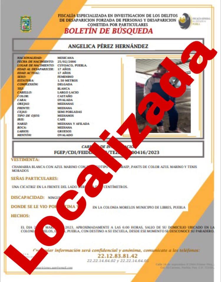 Amozoc, Puebla.- El día de jueves 30 de marzo de 2023 durante recorridos de seguridad y vigilancia y tras una llamada en cabina, se realizó la identificación de una menor de edad que se encontraba en calidad de desaparecida según la carpeta de investigación FDEP/CDI/ FEJDDFDCP/TEZIU-I/000416/203.