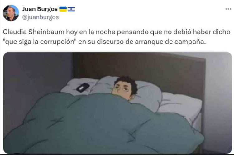 En el caso de la ex jefa de Gobierno, causó gracia el hecho de que durante las consignas de su discurso cometió el error de pronunciar: “Hay dos caminos a tomar este 2 de junio. Uno, que siga la corrupci…, que siga la Transformación. Dos, que siga la corrupción”, dijo la candidata representante de Morena, lo cual desató toda una ola de memes y tuits, algunos muy graciosos.