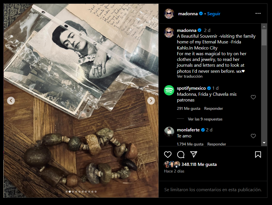 «Queremos precisar que la ropa, fotos y objetos que Madonna publicó en sus diferentes redes sociales no pertenecen o forman parte de la colección de la Casa Azul», señaló el recinto en el ciradi texto, según recoge AFP.