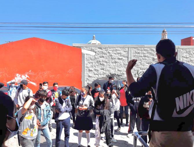 Una comisión de estudiantes del Bachillerato Digital 283 se encuentra manifestándose en la conocida “Casa Colorada” del municipio de Amozoc exigiendo que el cabildo municipal los reciba y atienda al llamado de los estudiantes que piden un terreno para la construcción de su institución.