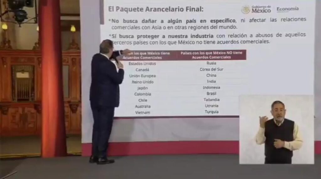 El paquete arancelario aprobado exenta a países con los que tenemos tratado comercial y es para proteger 350 mil empleos en materia de calzado, textil, automotriz y de acero, explica el secretario de Economía Marcelo Ebrard. pic.twitter.com/HUL8m1ITHi