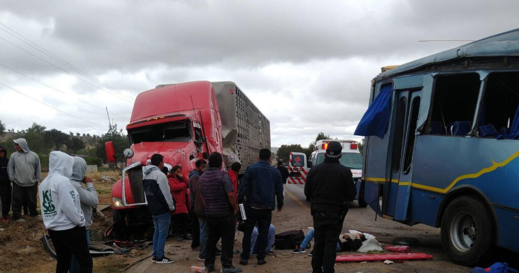 Jueves 01 Abril 2021.- Lamentables hechos se registraron la mañana este jueves alrededor de las 9:40 horas, en la carretera México Veracruz, a la altura del panteón municipal de Tequexquitla, se impacta un autobús de ATAH, contra un tráiler marca kenwort color rojo acoplado con una jaula con placas de circulación, 52 AA7Y y 532UP4 S. P. F, dejando un saldo de más de 15 personas lesionadas, de las cuales algunas fueron atendidas en el lugar por personal de Protección Civil de Tequexquitla, y otras fueron trasladadas al Hospital Regional de Apizaco.