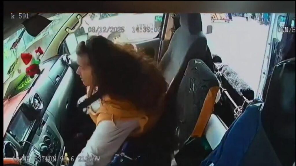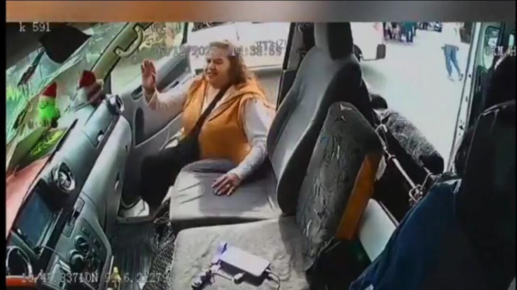 En el video se observa cómo el conductor detiene la unidad para permitir que la pasajera aborde. La mujer, vestida con una camiseta blanca y un suéter naranja, sube sin dificultad mientras el chofer baja por unos segundos para realizar una maniobra rápida. Ese breve instante fue suficiente para que la mujer aprovechara la oportunidad.