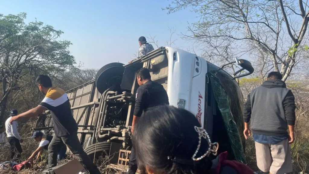 Vuelca autobús de peregrinos en Puebla; reportan 3 muertos y 10 heridos
