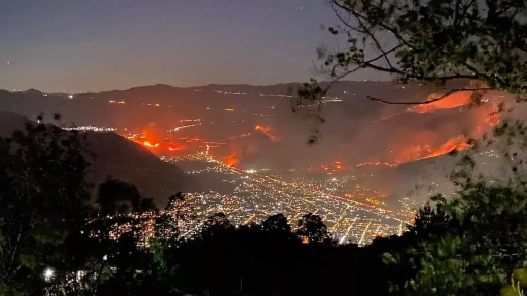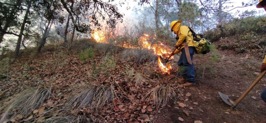 Personal de la Secretaría de la Defensa Nacional (Sedena) y las brigadas de Coyote 7, de la Secretaría de Medio Ambiente, Desarrollo sustentable y Ordenamiento Territorial combaten el fuego. Desde la madrugada, los pobladores pidieron ayuda y difundieron videos y fotografías a través de las redes sociales.