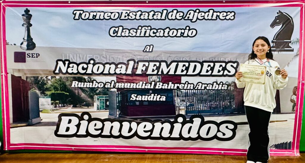 Acajete.- Maylin Flores Vivanco originaria de San Jerónimo Ocotitlán, Acajete, Puebla, representará al Estado de Puebla en la “Gimnasiada Nacional 2024” con sede en el Estado de Puebla, que se llevará acabo del 4 al 8 de julio, para llegar a este nacional quedó campeona a nivel Estatal Estatal de Ajedrez el pasado sábado 22 de junio con sede en la Universidad Tecnológica de Puebla (UTP).