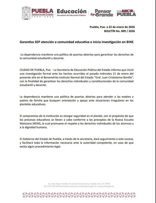 En respuesta, la Secretaría de Educación Pública del Estado (SEP) informó que se ha iniciado una investigación sobre posibles conductas inadecuadas del maestro, vinculado con al menos una estudiante de la institución. La dependencia estatal enfatizó que se mantiene una política de puertas abiertas para atender a padres de familia que busquen orientación y apoyo ante situaciones irregulares en los planteles educativos, asegurando la protección de los derechos individuales y constitucionales de la comunidad escolar.