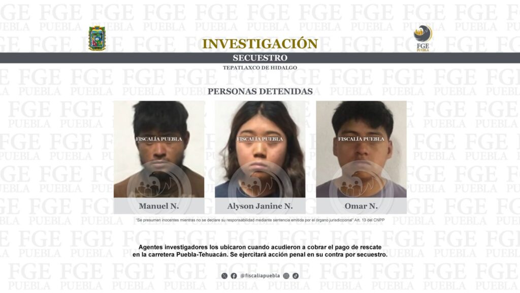 Agentes investigadores los ubicaron cuando acudieron a cobrar el pago de rescate en la carretera Puebla-Tehuacán. Se ejercitará acción penal en su contra por secuestro.
