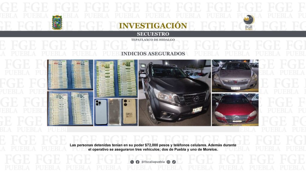 Las personas detenidas tenían en su poder $72,000 pesos y teléfonos celulares. Además durante el operativo se aseguraron tres vehículos; dos de Puebla y uno de Morelos.