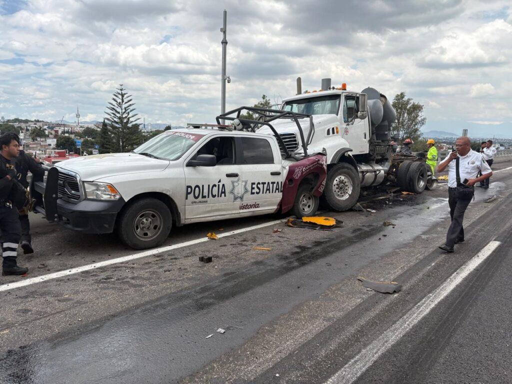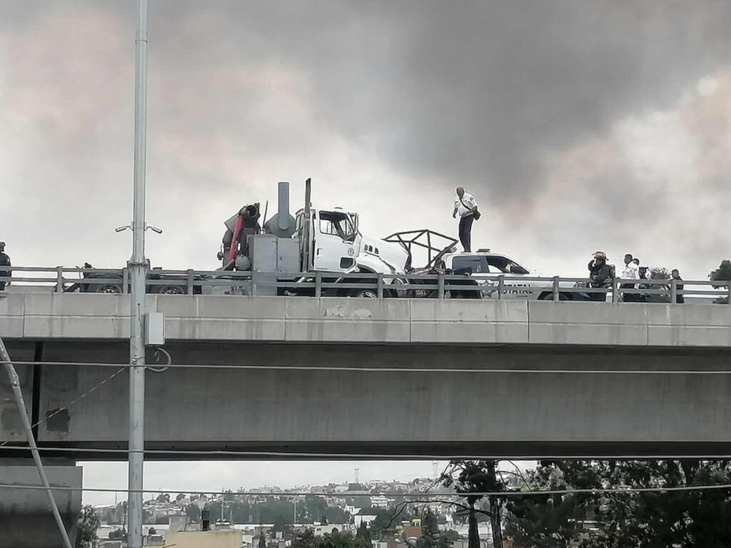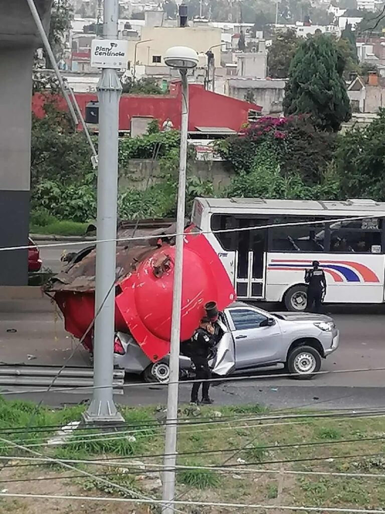 Según los primeros reportes, alrededor de las 13:00 horas, los agentes se encontraban realizando una revisión vehicular a una pipa blanca cuando un tractocamión colisionó con la patrulla de la corporación provocando que un contenedor se desprendiera y cayera sobre una camioneta gris que circulaba por el paso inferior. El impacto fue devastador y cobró la vida de los dos oficiales en el lugar.