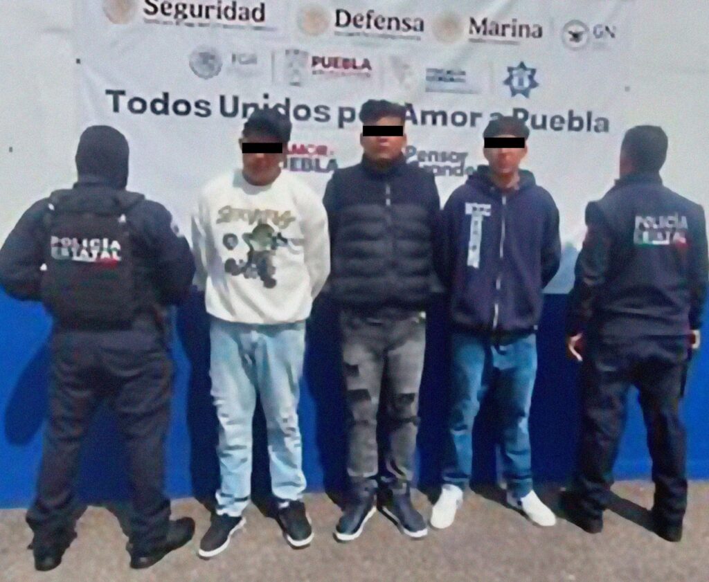 Los hechos ocurrieron la noche del jueves 1 de mayo, en las inmediaciones de la autopista México-Puebla, a la altura del Parque Industrial La Resurrección. De acuerdo con la Secretaría de Seguridad Pública del Estado (SSP), los detenidos fueron identificados como Miguel N., de 25 años; Isaac N., de 22 años; y Brian N., de 19 años.