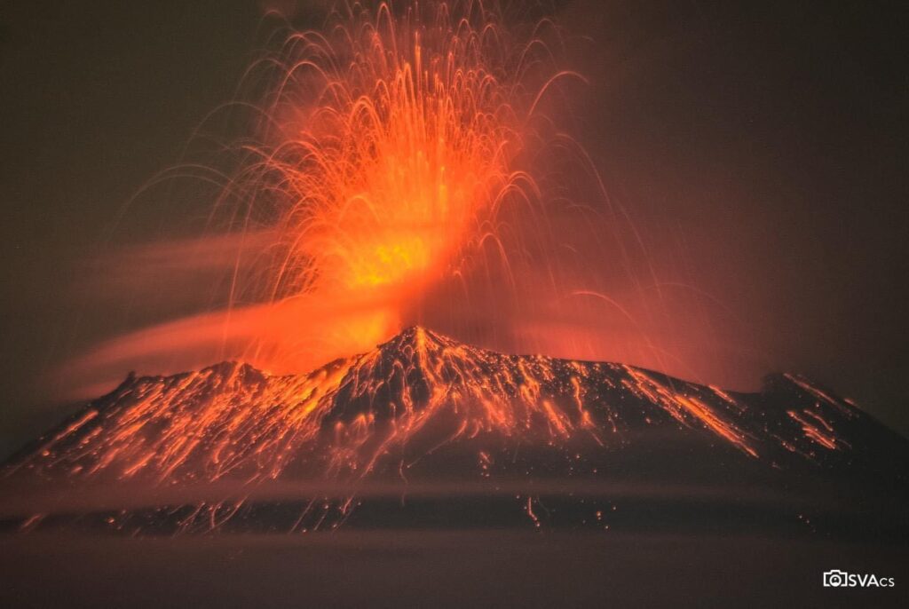 - Lanzamiento de fragmentos incandescentes sobre las laderas del volcán