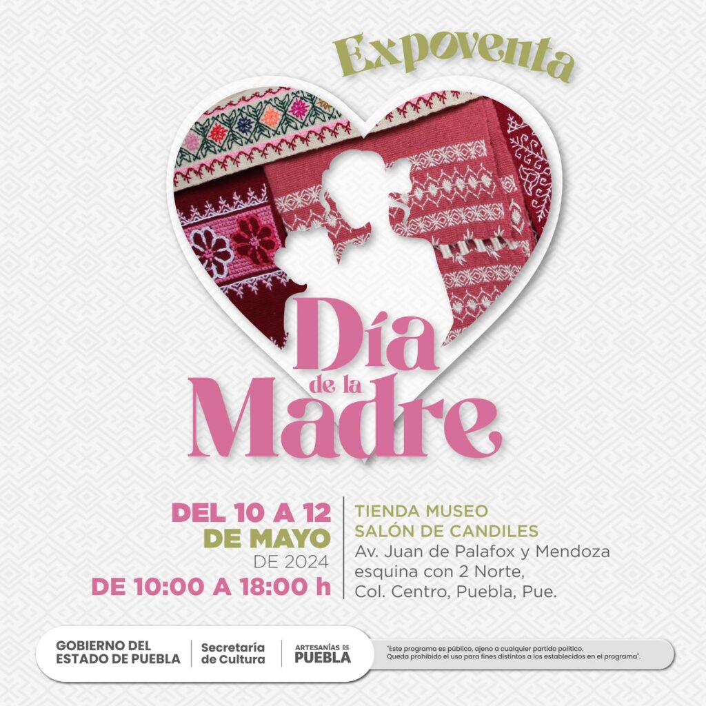 El primero será una expoventa artesanal, el 10 de mayo, que se realizará en la Tienda Museo Salón de Candiles, situada en Avenida Juan de Palafox y Mendoza esquina con 2 Norte, en el Centro Histórico y contará con artículos como joyería, bordados y cosmética natural provenientes de municipios como Acatlán, Pahuatlán, Xochitlán de Vicente Suárez, Yaonáhuac, Zautla, San Gabriel Chilac y Puebla, la cual permanecerá hasta el domingo 12 de mayo.