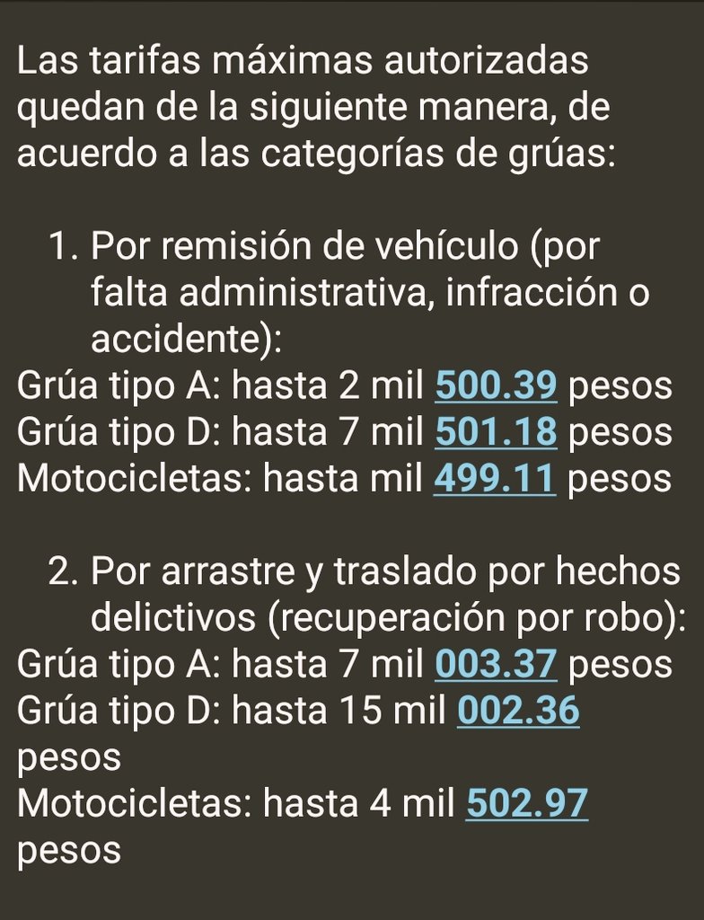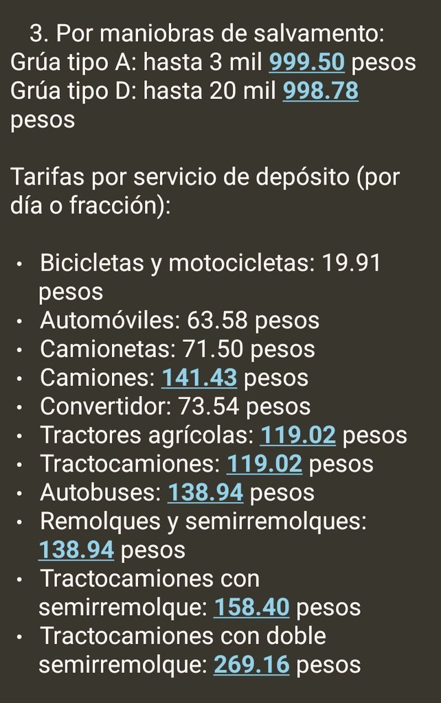 - Grúa tipo A: hasta $2,500.39